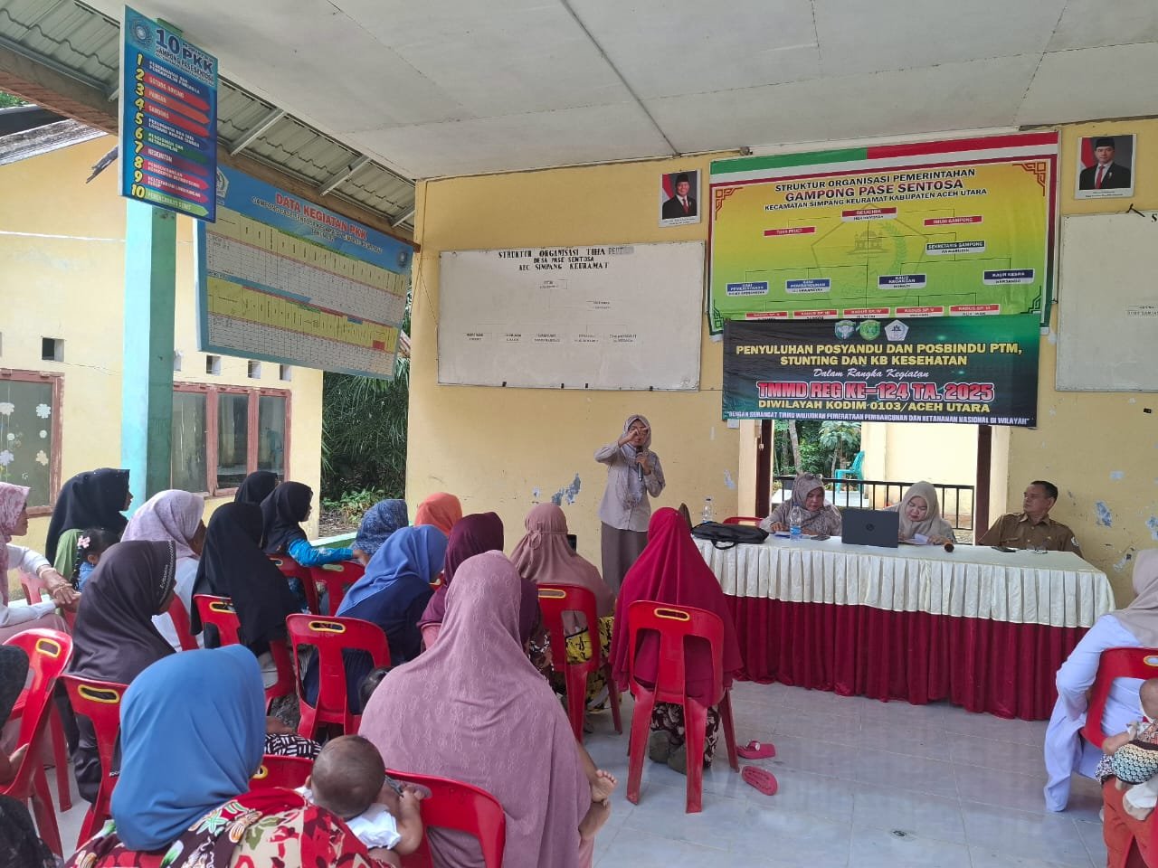 Aceh Utara, Satupena.co.id, – Kegiatan penyuluhan kesehatan menjadi salah satu sasaran non-fisik pada pelaksanaan TNI Manunggal Membangun Desa (TMMD) ke-124 Kodim 0103/Aceh Utara yang digelar di Desa Pase Sentosa, Kecamatan Simpang Keuramat, Kabupaten Aceh Utara.28 Mei 2025