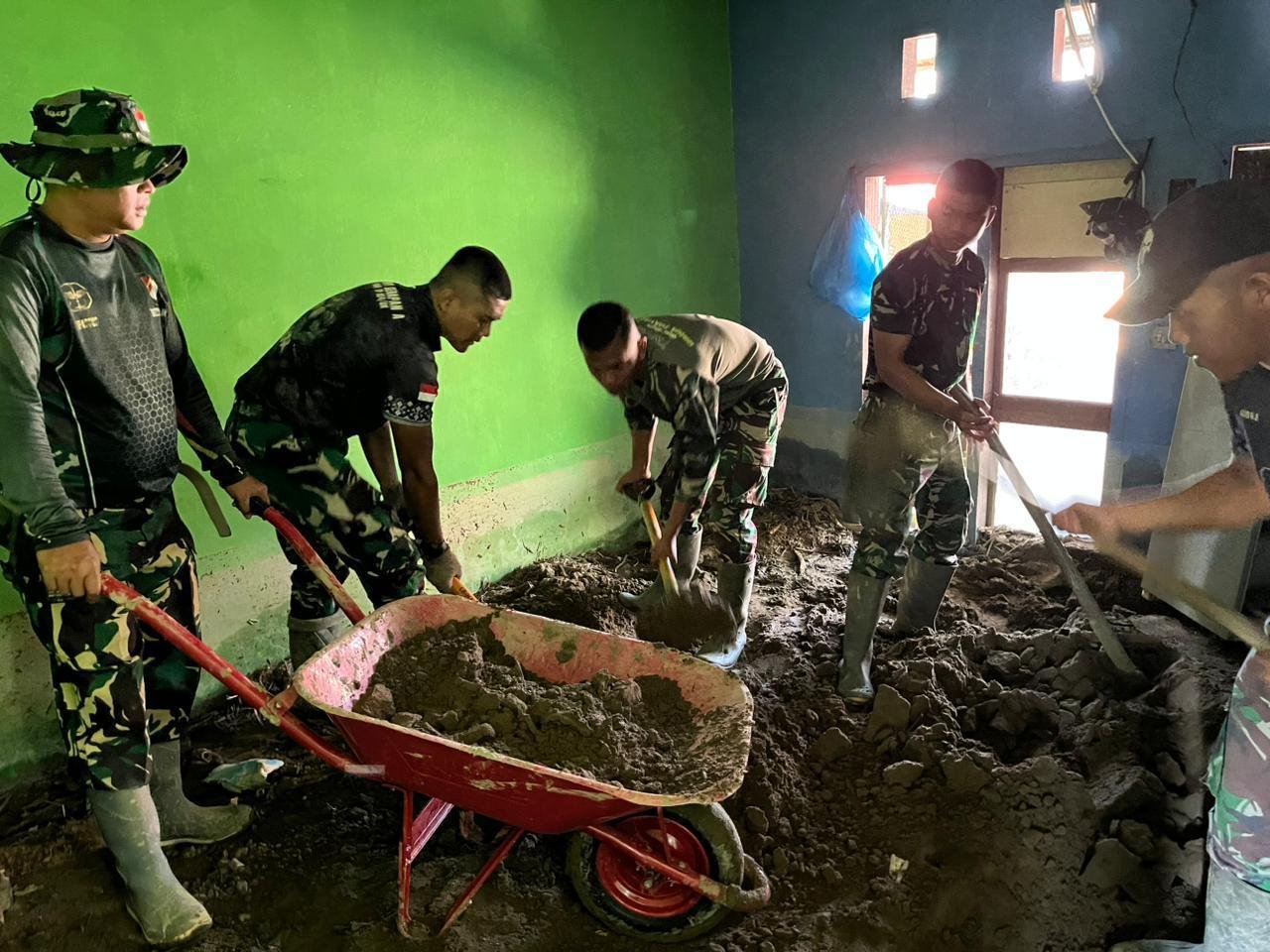 Serma Eka Pralaga mengatakan, TNI berkomitmen membantu pemulihan fasilitas umum, khususnya sarana pendidikan, agar dapat kembali digunakan.