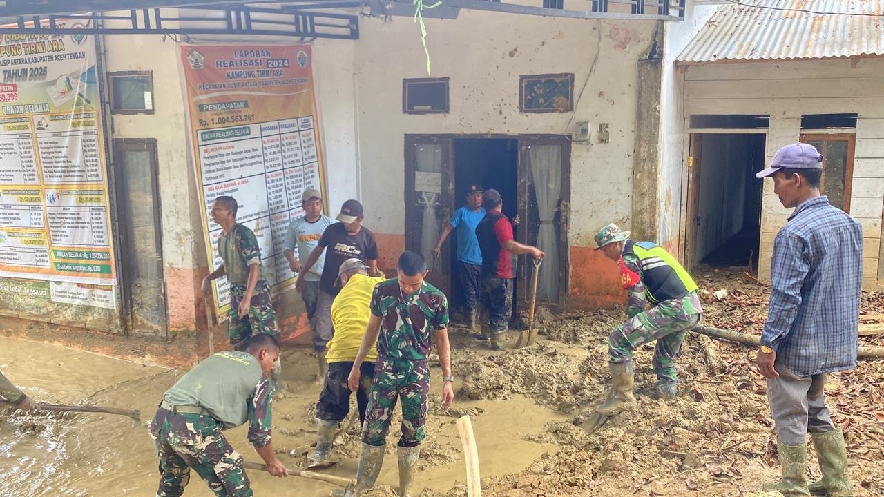 Aceh Tengah, Satupena.co.id– Anggota Koramil 08/Silih Nara Kodim 0106/Aceh Tengah bersama personel Batalyon Infanteri Teritorial Pembangunan (Yonif TP) 854 serta masyarakat melaksanakan kegiatan gotong royong membersihkan kantor desa di Desa Termiara, Kecamatan Rusip Antara, Kabupaten Aceh Tengah, Jumat (30/1/2026).