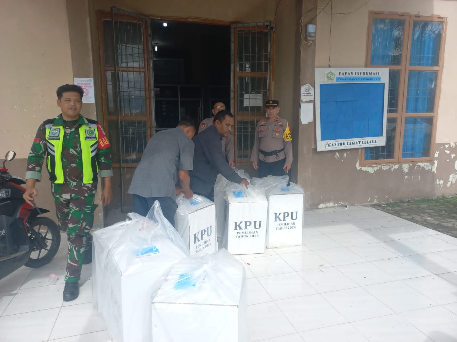 Memperketat keamanan dan keselamatan kotak suara peilkada serentak 2024, personel Polsek Celala Polres Aceh Tengah dan TNI Koramil 10 Celala Kodim 0106/Aceh Tengah, mengamankan dan mengawal pergeseran kotak suara dari PPK ke gudang Logistik Pemilihan KIP Kabupaten setempat.