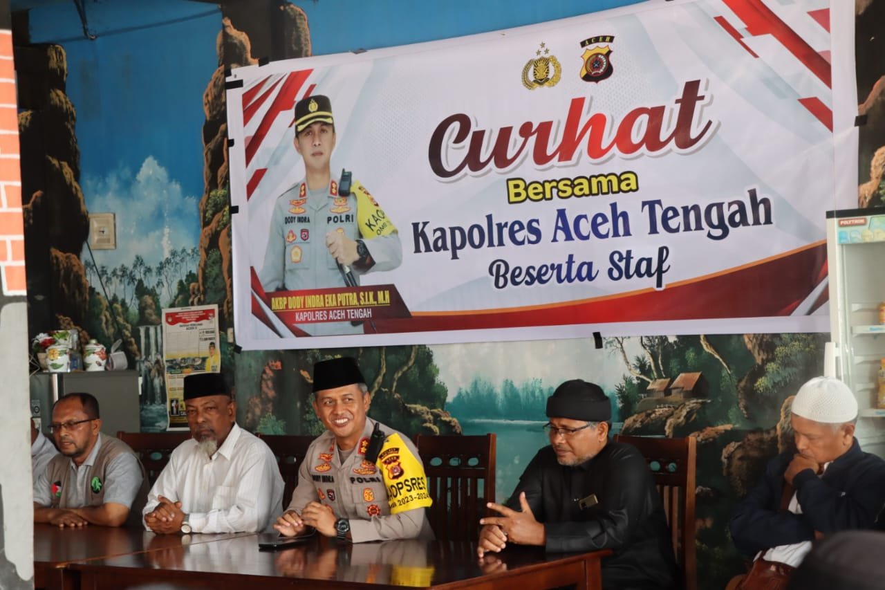 Dalam rangka mendengar langsung keluh kesah dan masukan dari masyarakat, Kapolres Aceh Tengah AKBP Dody Indra Eka Putra, menggelar Curhat dengan warga Masyarakat.