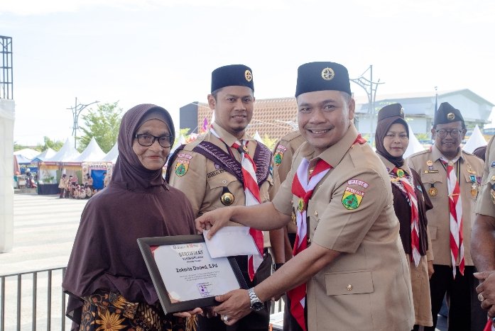 Dalam rangkaian upacara ini, Wakil Bupati Pidie juga melakukan penyematan tanda penghargaan Panca Warsa II dan I yang didampingi oleh Ketua Kwartir Cabang (Kwarcab) Pidie. Selain itu, turut diserahkan piagam penghargaan dan santunan kepada keluarga almarhum Kakak Zakaria Daoed, S.Pd., sebagai bentuk penghargaan atas dedikasi beliau dalam Gerakan Pramuka selama 53 tahun.