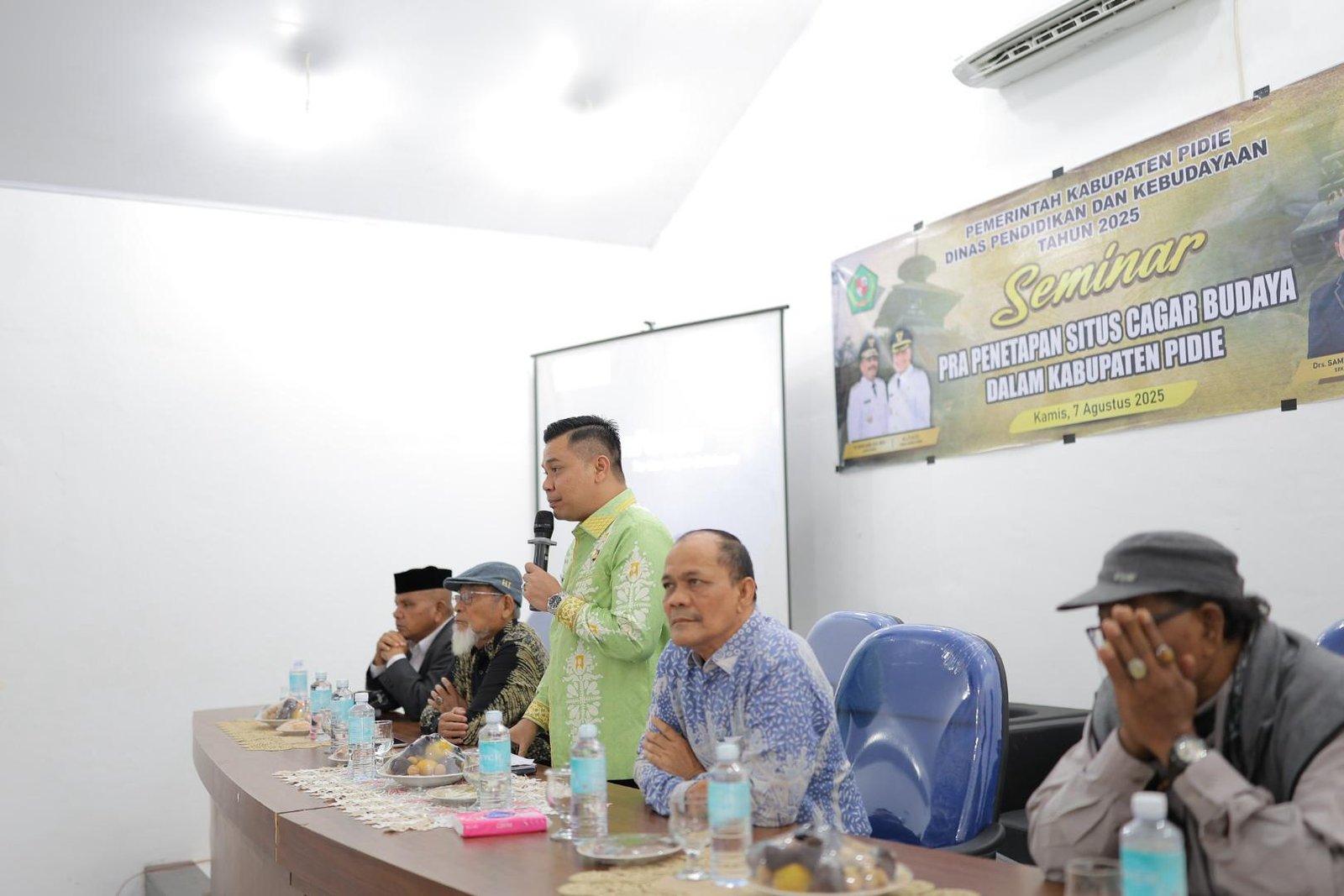 Sigli- Wakil Bupati Pidie, Alzaizi, membuka acara Pra Seminar Penetapan Situs Cagar Budaya, yang bertempat di Aula Dinas Pendidikan Kabupaten Pidie, Acara tersebut diselenggarakan oleh Pemerintah Kabupaten Pidie melalui Dinas Pendidikan dan Kebudayaan (Disdikbud), Kabupaten Pidie Tahun 2025. Kamis (07/08/2025).