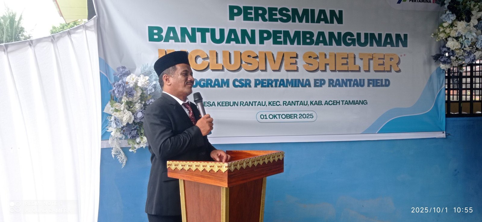 Wakil Bupati Aceh Tamiang Ismail SE.I bersama Manager Pertamina EP Rantau Field, Tomi Wahyu Alimsyah meresmikan bantuan Pembangunan Inclusive Shelter Program CSR Pertamina EP Rantau Field. Kegiatan berlangsung di Kampung Kebun Rantau pada Rabu (01/09/2025).