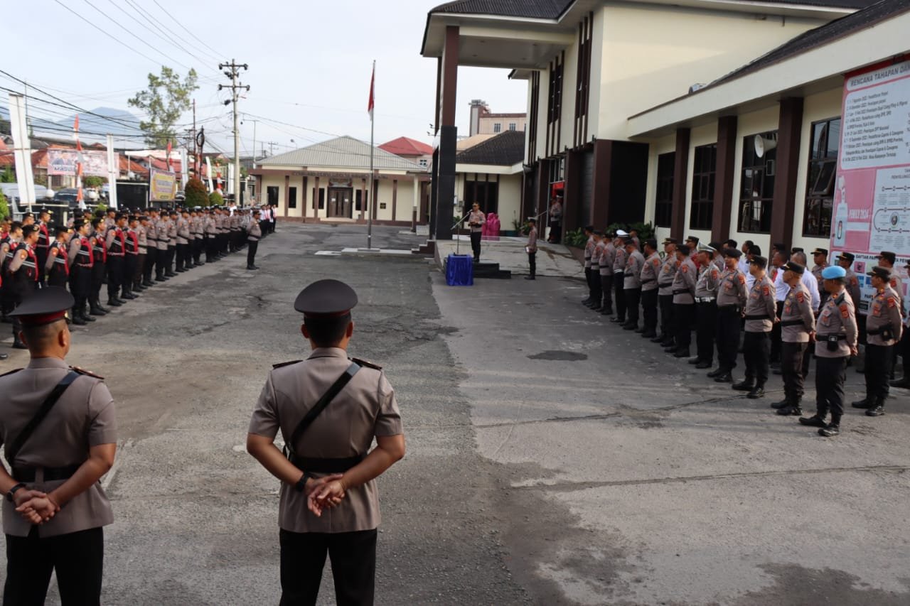“Marilah kita selalu tingkatkan hubungan kerjasama dalam bertugas, baik dalam internal maupun dengan instansi/pihak terkait maupun masyarakat serta jaga dan peliharalah dengan baik harkat dan martabat institusi polri ini dengan cara melaksanakan tugas dengan baik”ajak Kapolres Akbp Dody mengakhiri amanatnya.