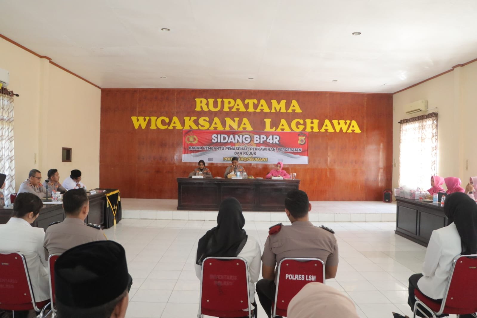Sidang BP4R dipimpin Wakapolres Lhokseumawe, Kompol Salmidin, S.E., M.M., selaku Ketua Tim, didampingi Kabag SDM Polres Lhokseumawe, Kompol R.A. Asmainur, S.I.K., selaku Sekretaris Tim, serta Ketua Seksi Organisasi Bhayangkari Cabang Lhokseumawe, Ny. Anggun Abdhi.