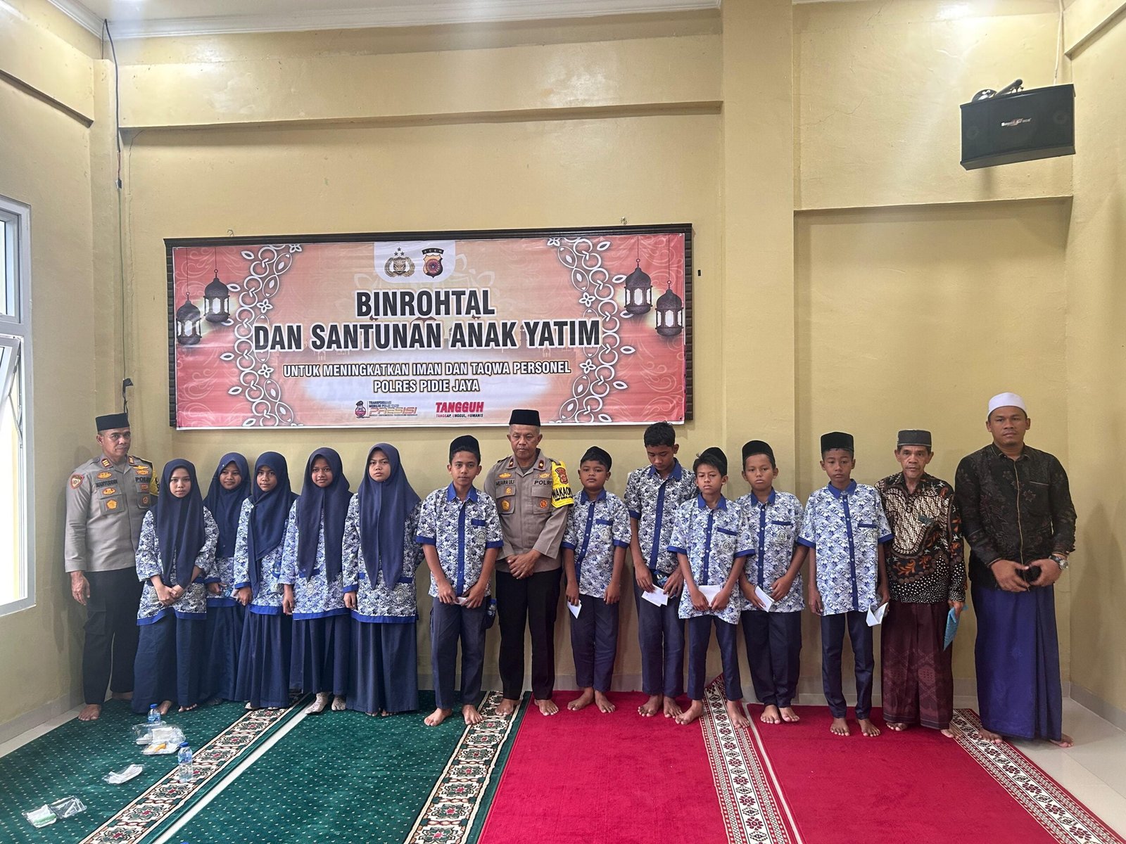 Sebagai bagian dari agenda Binrohtal, sebanyak 11 anak yatim dari MTsN 3 Pidie Jaya turut menerima santunan dari jajaran Polres.