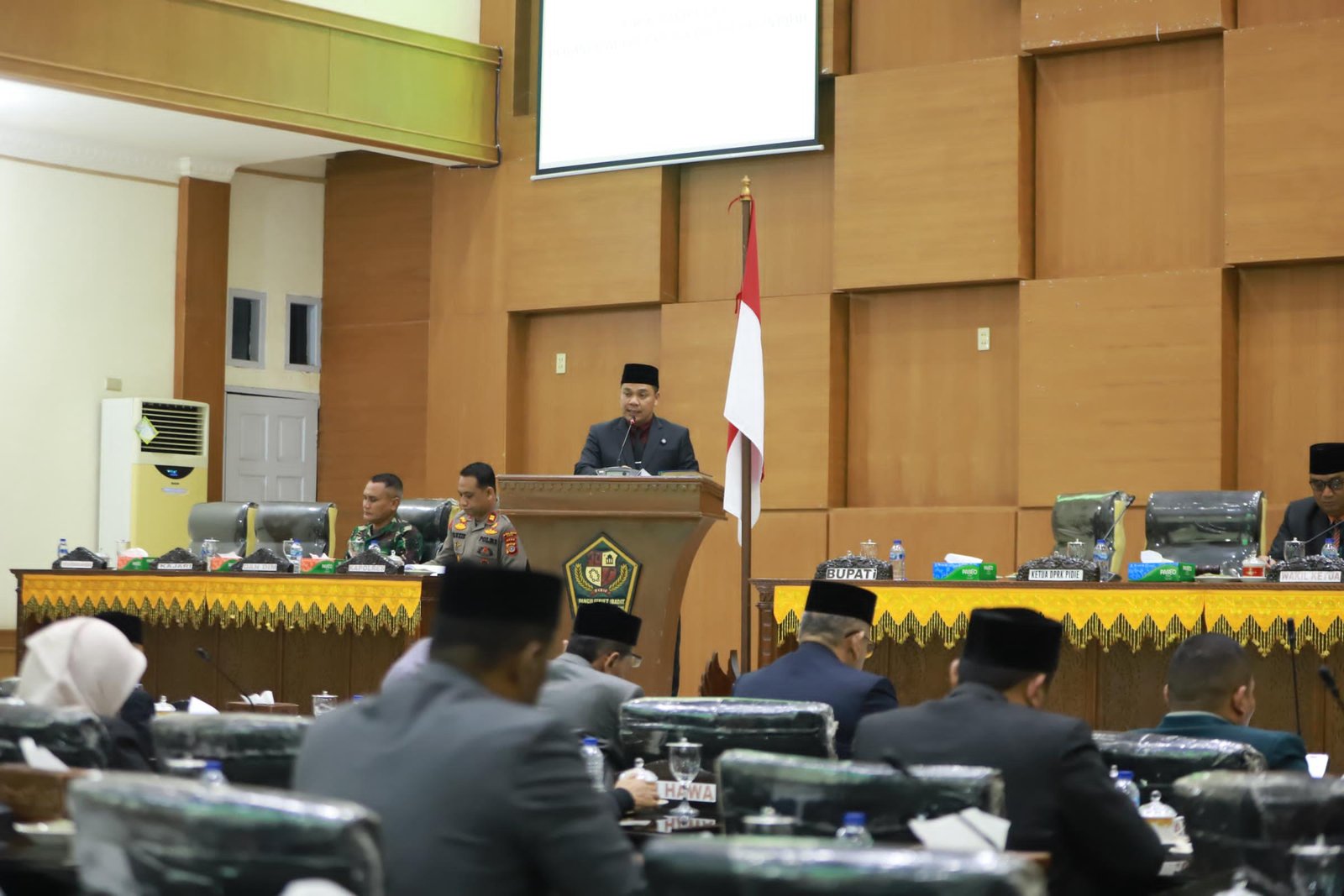 Mengawali sambutannya, Wakil Bupati Alzaizi menyampaikan rasa syukur atas terlaksananya rapat paripurna tersebut dengan baik. Ia juga mengungkapkan apresiasi dan penghargaan setinggi-tingginya kepada pimpinan dan seluruh anggota dewan yang telah memberikan perhatian dan dukungan selama proses pembahasan RPJMD.