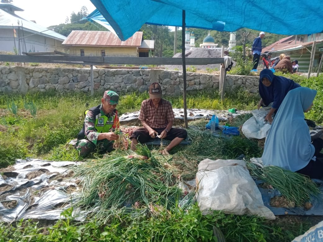 Takengon -satupena.co.id: Dalam rangka meningkatkan hasil produksi panen milik warga, Babinsa Koramil 01/Lut Tawar Kodim 0106/Ateng Serda Kariadinata melaksanakan pendampingan memanen bawang merah Di desa Bale Atu Kec Lut Tawar Kab, Aceh Tenggah, jumat (13/09/24)