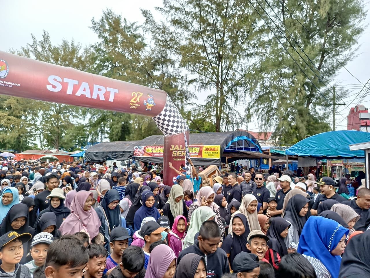 Pidie Jaya – menjelang Pilkada 2024, Polres Pidie Jaya bersama Pemerintah Kabupaten Pidie Jaya menggelar Jalan Sehat, acara tersebut yang berlangsung di Lapangan Bola Kaki Kota Meureudu kabupaten Pidie jaya. Minggu. (10/11/2024)