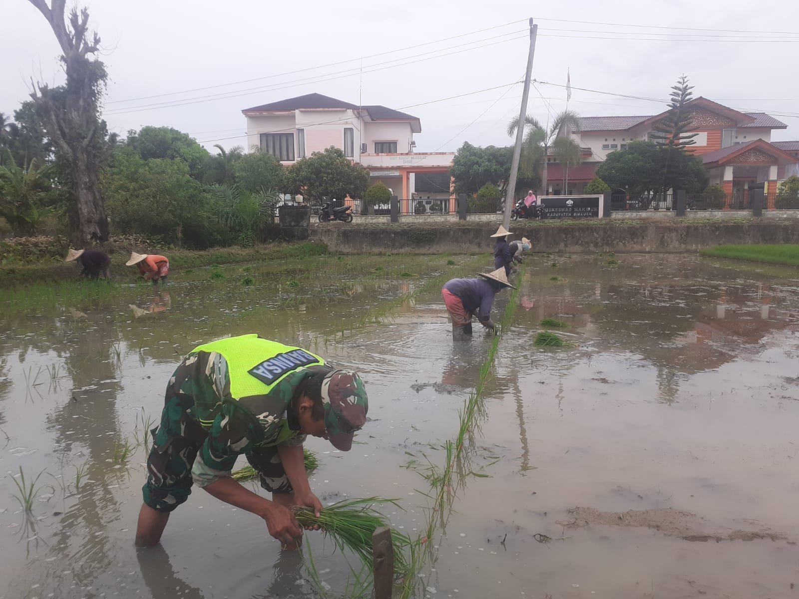 Wujukan TNI Manunggal, Babinsa Koramil 09/Makmur Bantu Petani Tanam Padi.