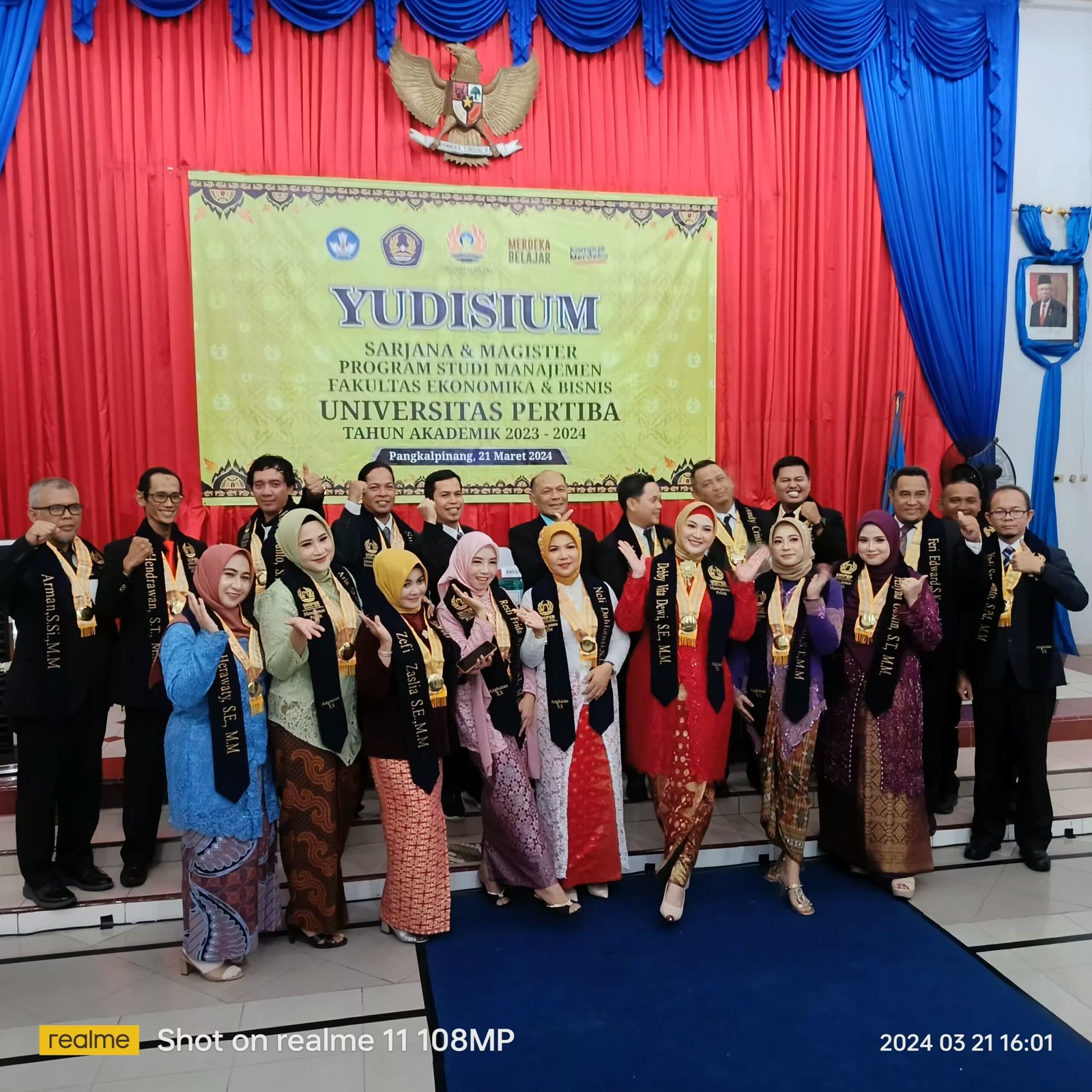 Prosesi yudisium biasanya tidak digelar secara serentak, sebagaimana Kepala Sekolah SMAN 1 Simpang Rimba, Yudi Sapriyanto S.Pd., M.M., berhasil lulus menyelesaikan yudisium Magister Ilmu Ekonomi dan Bisnis di Universitas Pertiba Pangkalpinang, tahun akademik 2023/2024, tanggal 21/3/2024, pada Kamis lalu.